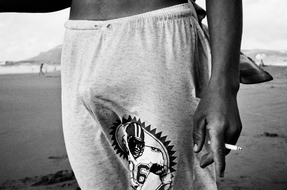 Ed van der Elsken’s photo of a group of men in leathers, apparently motor mice, is one such unique moment; the photo by Mario Testino of the boys from Brazil on a boulevard in Rio de Janeiro in another. Though guys indeed, but right through all that display of masculinity, the photographers have also recorded the friendship between these macho men.