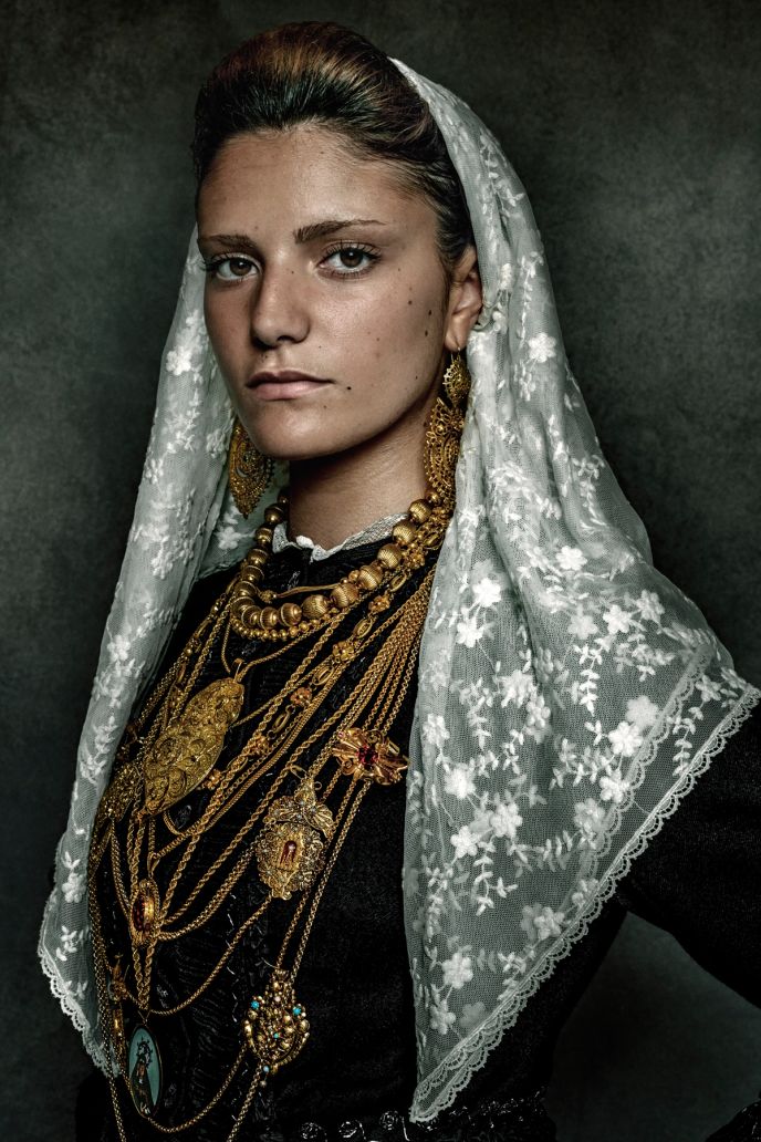 A woman in traditional Viana do Castelo bridal dress in Portugal, photographed by Mario Testino for A Beautiful World.