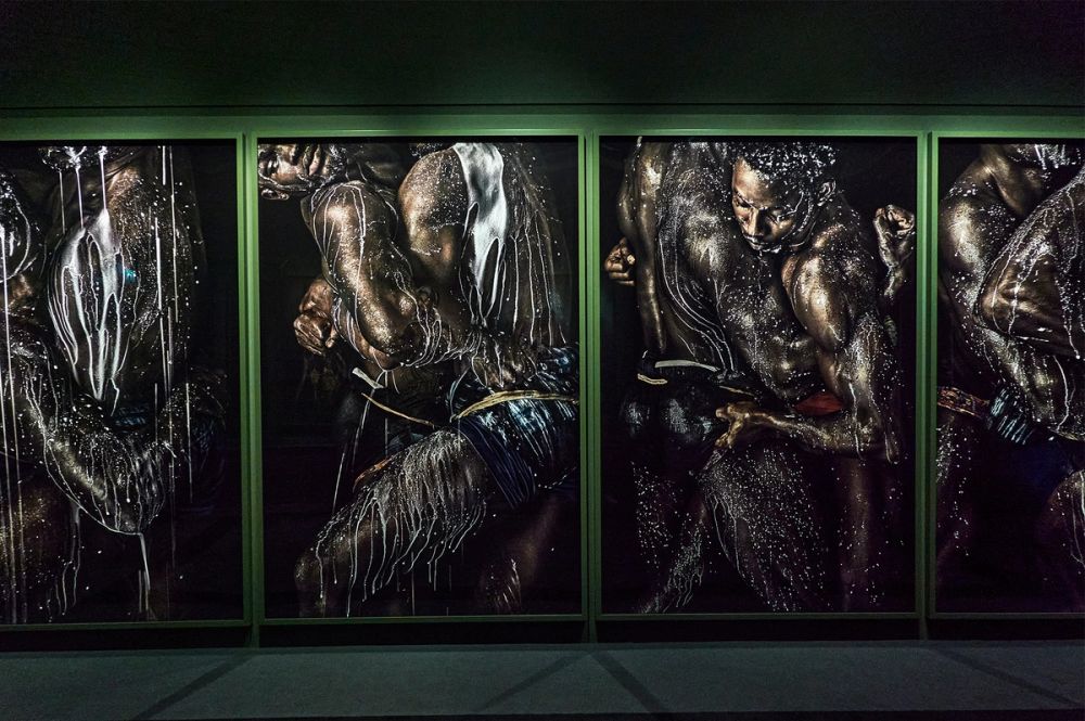 Mario Testino’s Laamb wrestlers, photographed in Dakar, Senegal, take on monumental scale at the A Beautiful World exhibition at Palazzo Bonaparte, where ritual, strength and spiritual preparation are rendered with overwhelming physical presence.