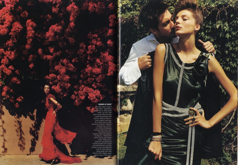 American Vogue, July 2004, p.120-121. Daria Werbowy and Jake Gyllenhaal photographed by Mario Testino.