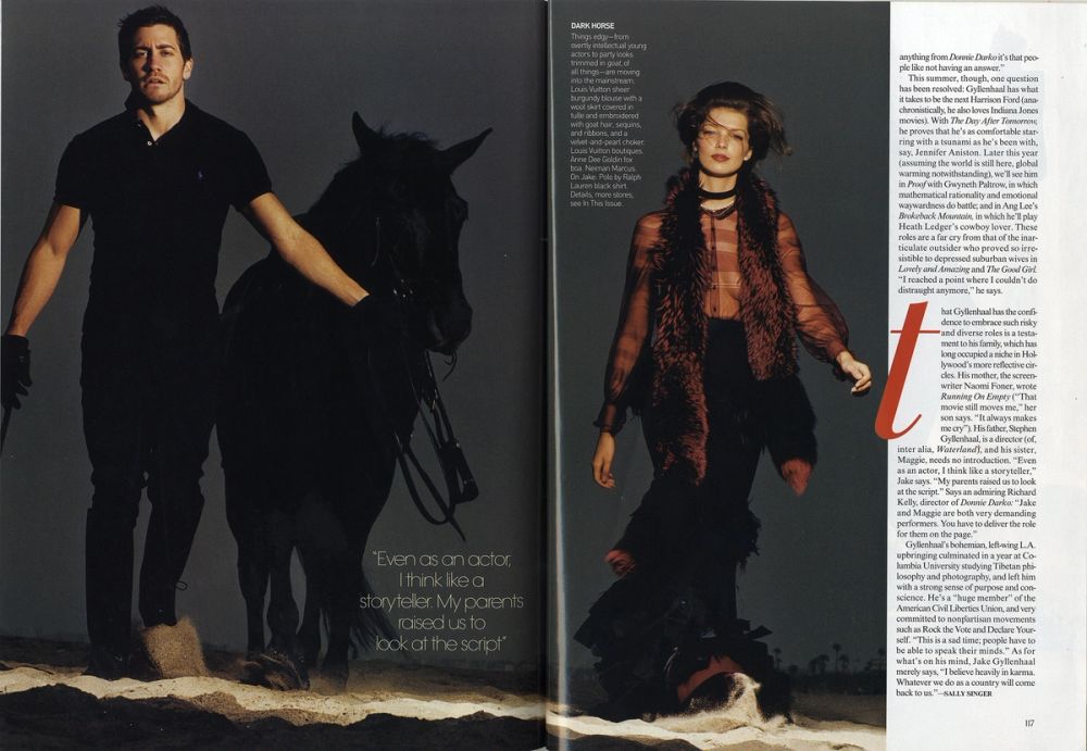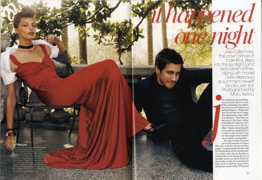 American Vogue, July 2004, p.114-115. Daria Werbowy and Jake Gyllenhaal photographed by Mario Testino.
