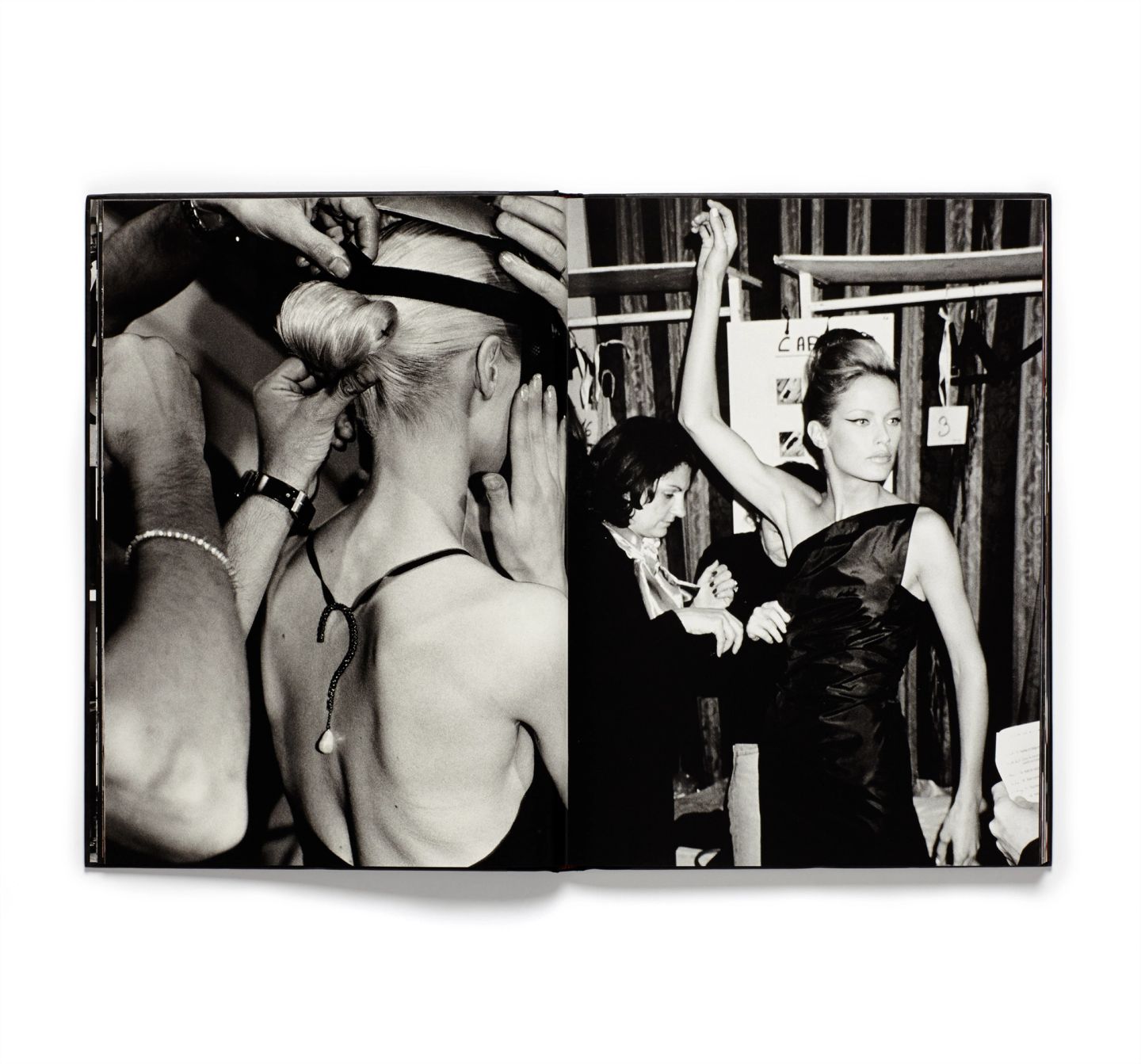 Published in 1999, "Front Row/Backstage" captures the excitement and drama of the international shows in Paris, London and Milan. In this book, Testino has curated a collage of images from these intense, hectic, beautiful spectacles, contrasting the chaos and reality behind the scenes with the serenity of the model’s final appearance on the catwalk. In "Front Row/Backstage", Testino invites us to share his coveted seat in the front row to witness the fleeting moments of fashion as it happens.