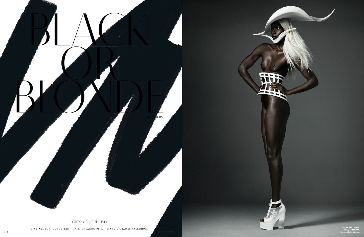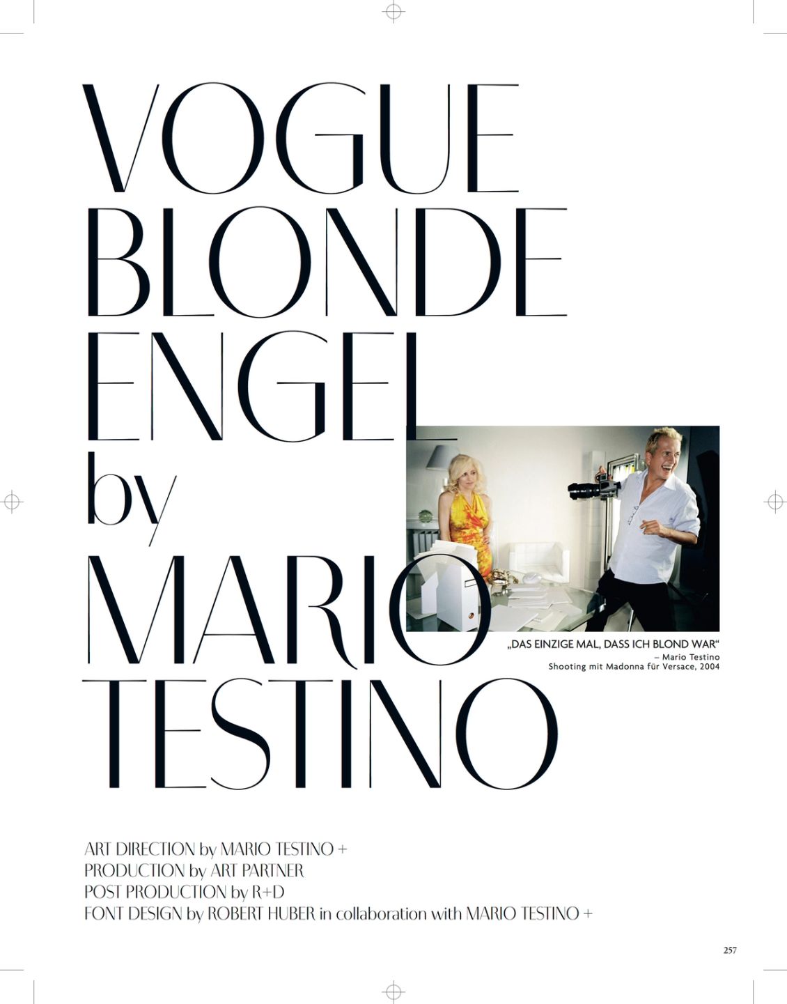 Testino has been invited to creative direct and photograph numerous special editions of Vogue magazine to date. Testino works closely with the respective editors of each title to develop a theme that will dictate everything inside the issue. With the support of his team at MARIOTESTINO+, he conceives a bespoke treatment to the art direction, applying conceptual typography and a unique layout appropriate to each theme. Themes have included Sex, The Body, Blondes and Obsession.