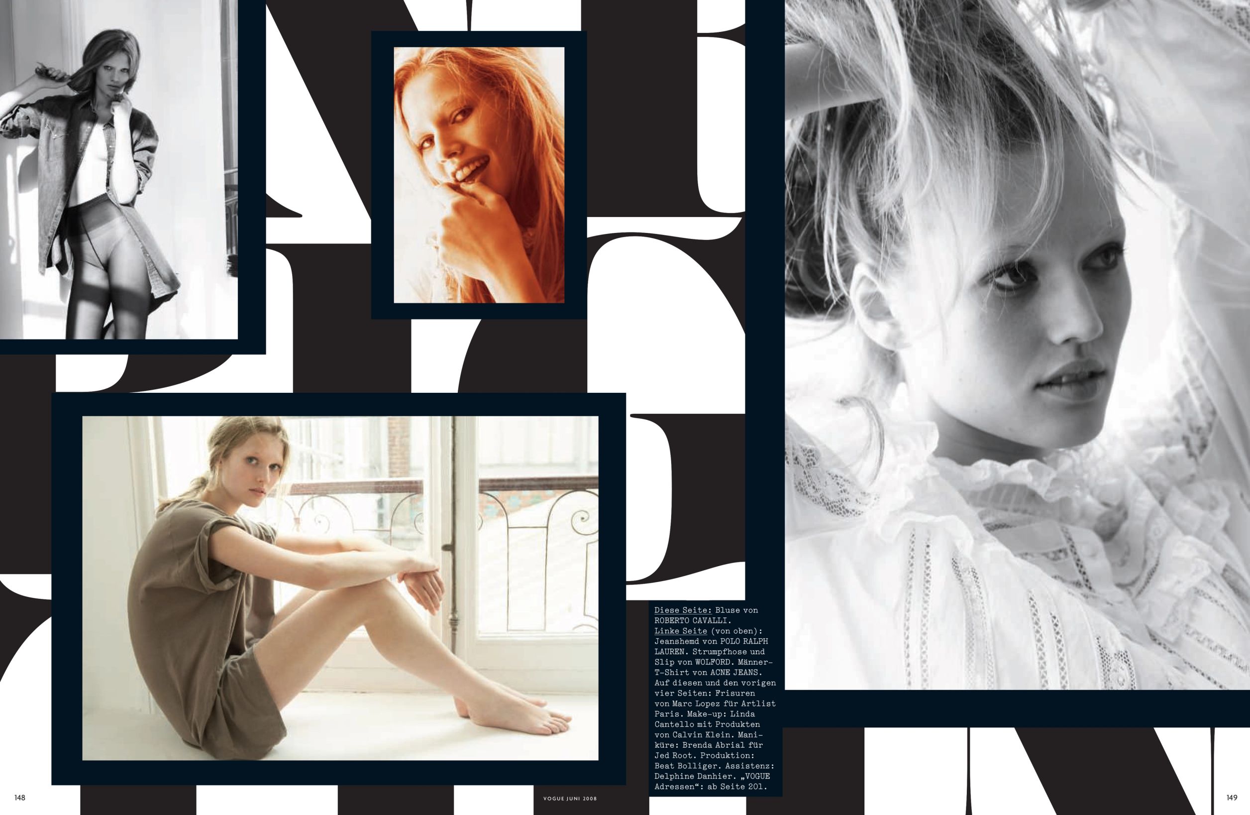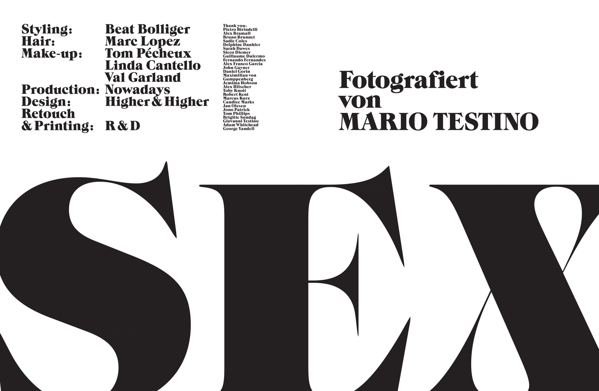 Testino has been invited to creative direct and photograph numerous special editions of Vogue magazine to date. Testino works closely with the respective editors of each title to develop a theme that will dictate everything inside the issue. With the support of his team at MARIOTESTINO+, he conceives a bespoke treatment to the art direction, applying conceptual typography and a unique layout appropriate to each theme. Themes have included Sex, The Body, Blondes and Obsession.