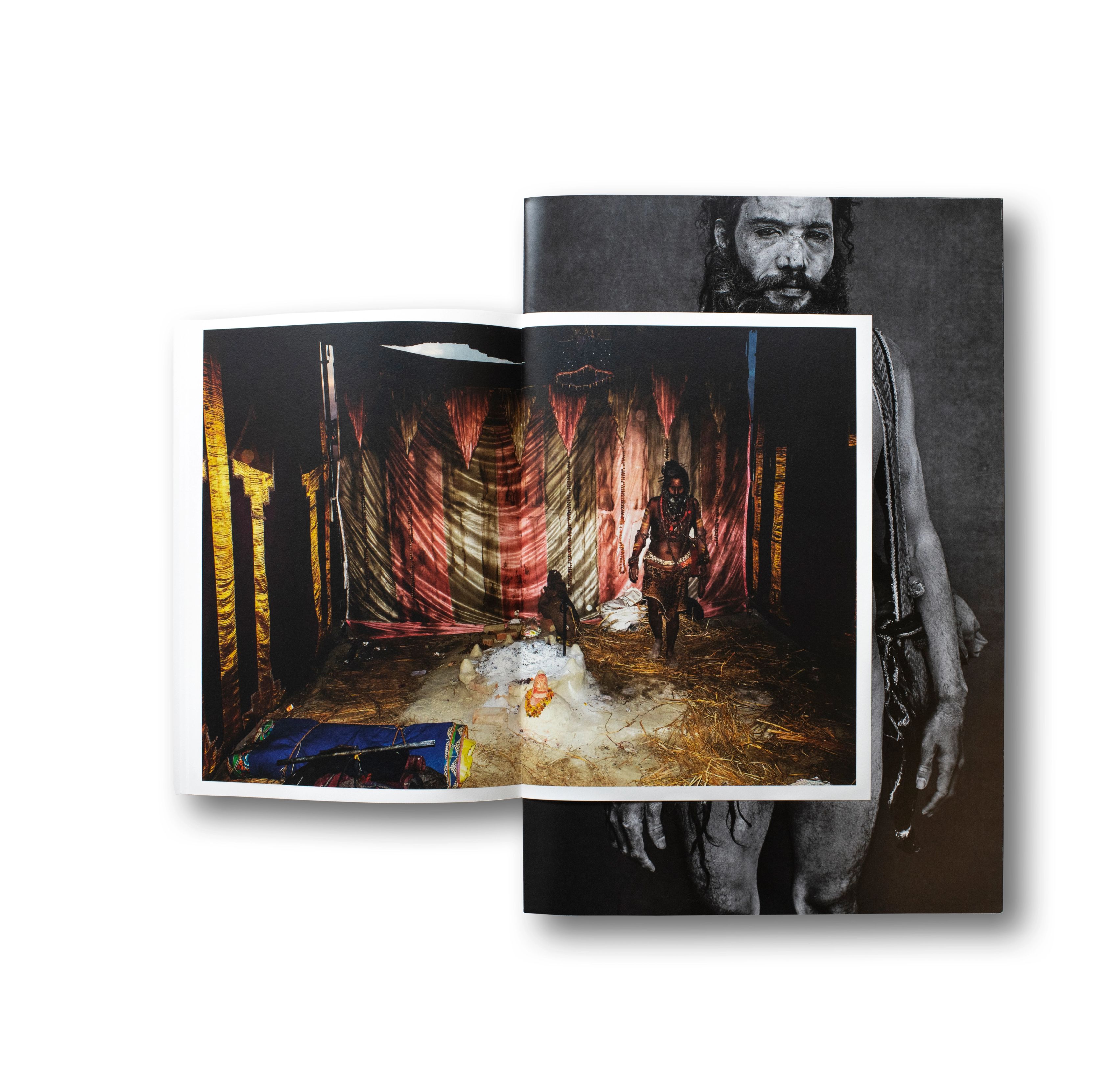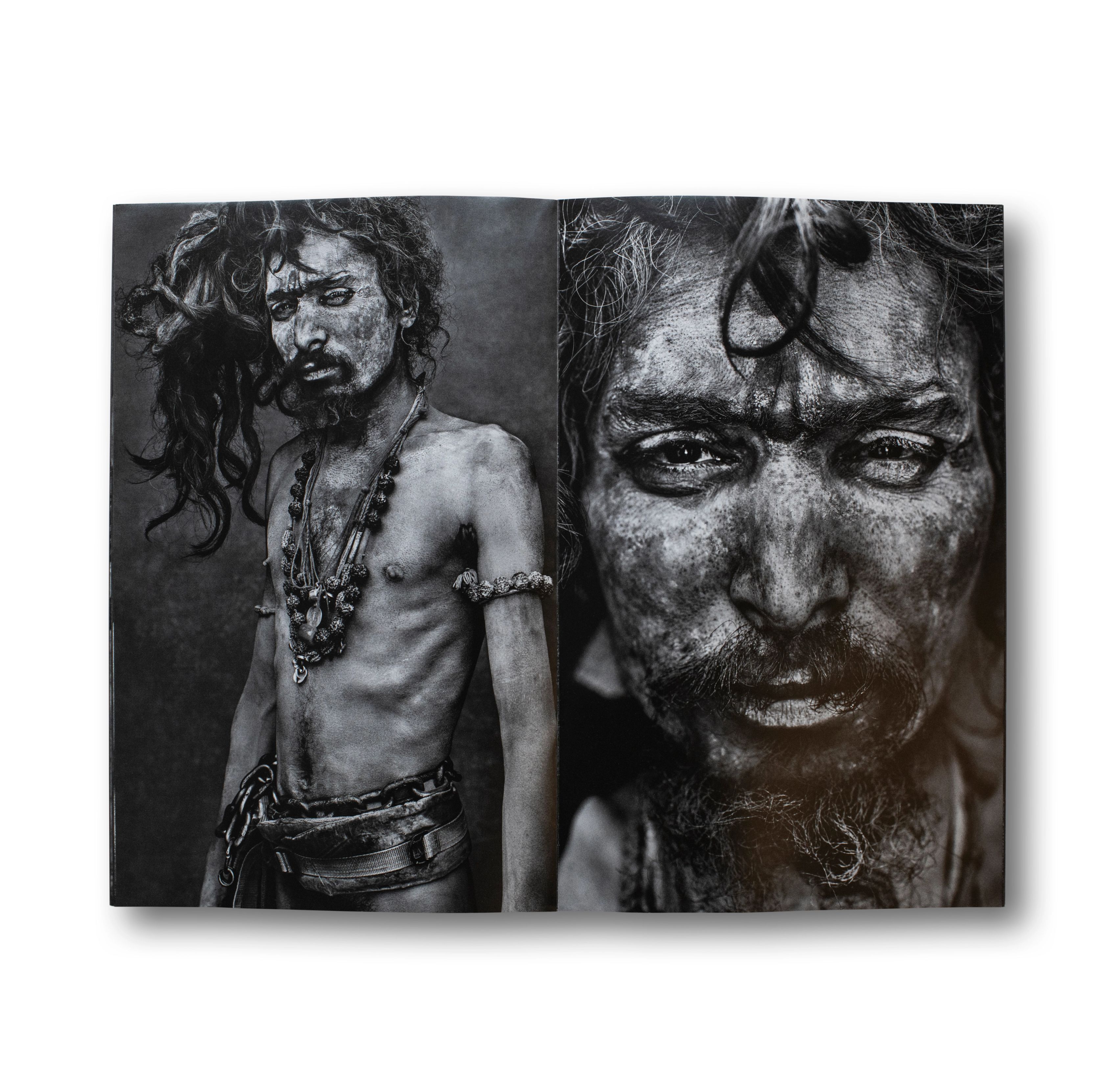 Testino magnifies the occasion by photographing those at the centre of the pilgrimage: the sadhus. There are many instances in which devotion takes a physical form, however, few carry the cultural significance and the extremeness of the sadhus, men committed to an ascetic life who become the embodiment of belief. Not only material possessions have been forgotten in complete renunciation, but the body and its needs are left behind in the quest for ultimate enlightenment. Faith possesses everything, replacing identity itself.