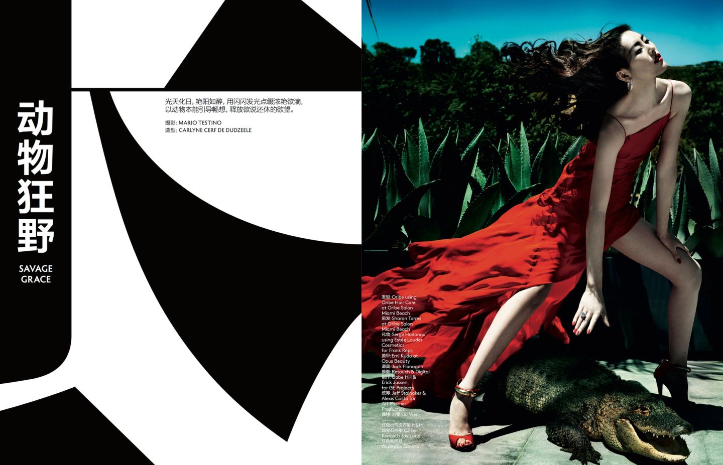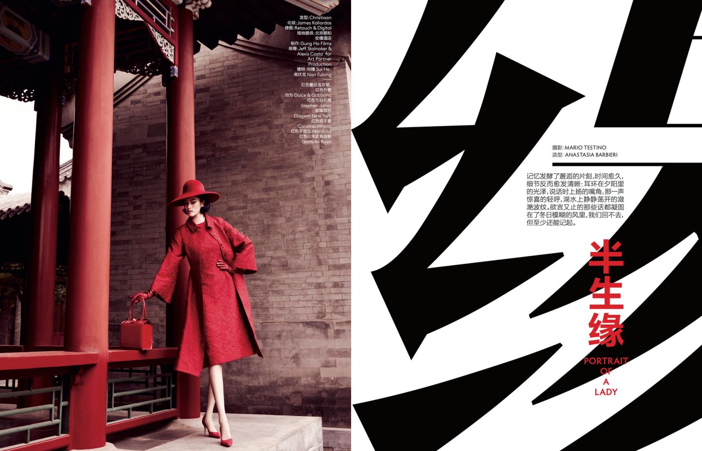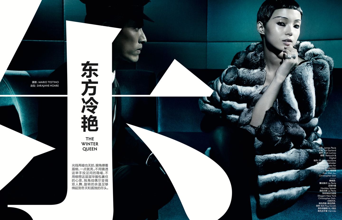 Editor Angelica Cheung invited Mario Testino to guest edit and shoot every fashion story for the special 100th issue of Vogue China. For Cheung, Testino has been one of the first Western photographers to understand how to capture modern fashion and beauty in China.