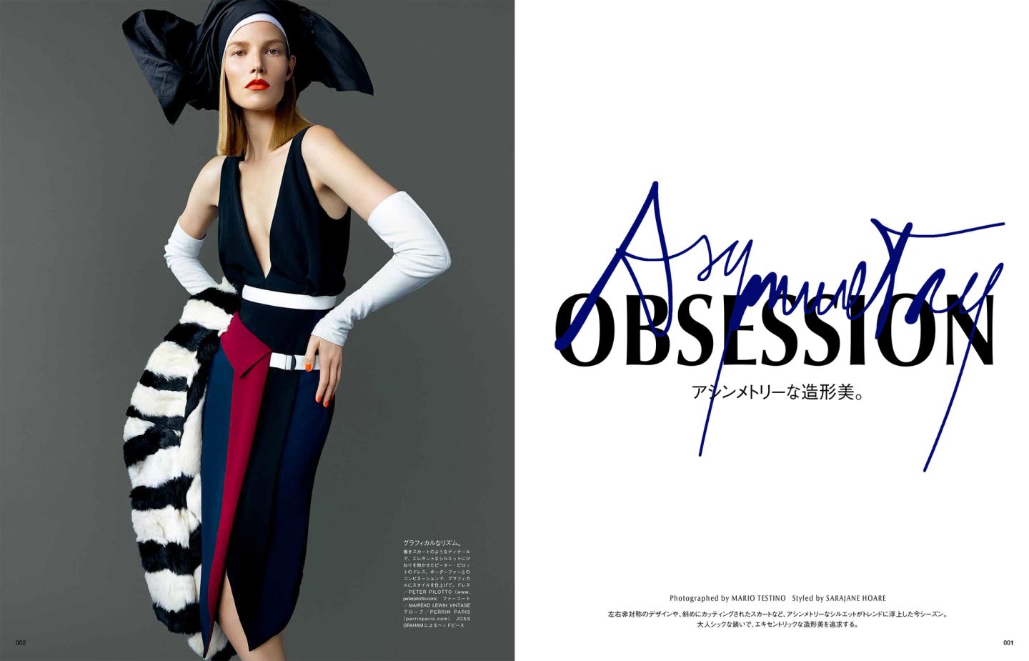 Testino has been invited to creative direct and photograph numerous special editions of Vogue magazine to date. Testino works closely with the respective editors of each title to develop a theme that will dictate everything inside the issue. With the support of his team at MARIOTESTINO+, he conceives a bespoke treatment to the art direction, applying conceptual typography and a unique layout appropriate to each theme. Themes have included Sex, The Body, Blondes and Obsession.