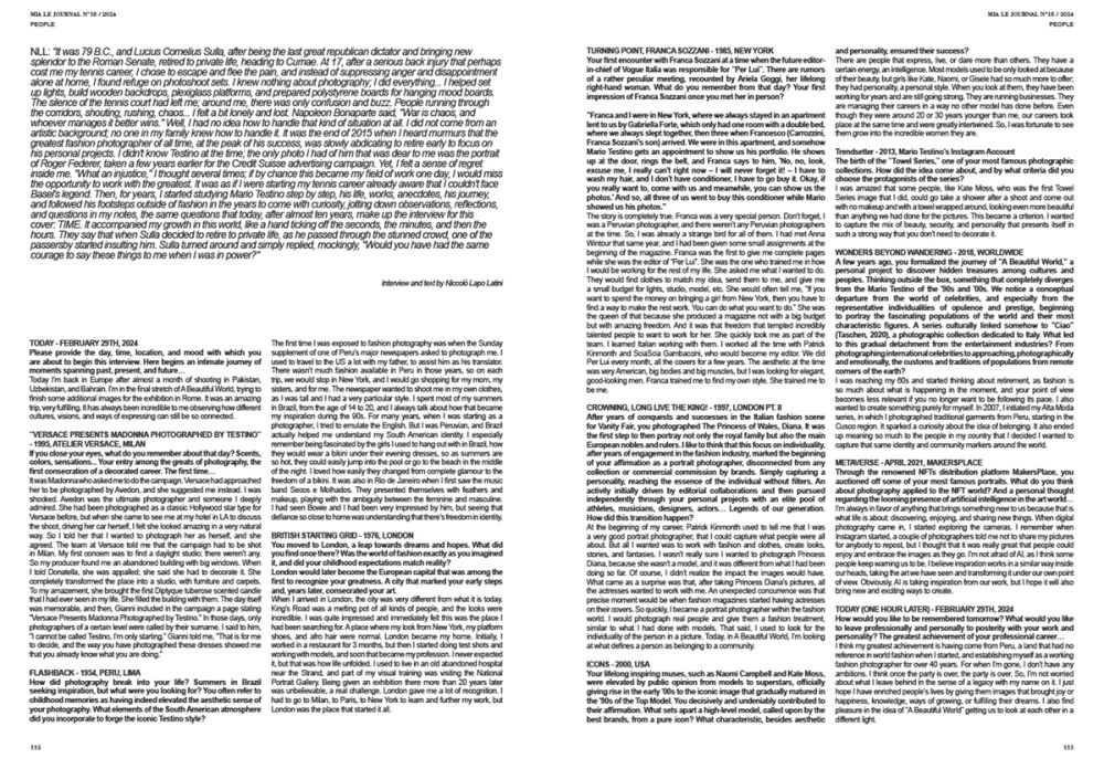 In its People issue, MIA LE JOURNAL celebrates Mario Testino’s continuing exploration of human identity through A Beautiful World. The feature offers a rare look into Testino’s creative process and philosophy, tracing his evolution from fashion’s most celebrated photographer to a visual anthropologist of modern culture. Through an exclusive interview with editor Niccolò Lapo Latini, Testino discusses belonging, heritage, and the universality of beauty. The piece coincided with the A Beautiful World exhibition in Rome, marking a defining moment in his artistic journey.